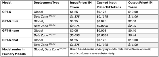GPT-5 现已通过 Azure AI Foundry API 提供服务,支持多种部署选项,帮助用户根据成本效率和合规要求灵活选择。其中包括支持全球标准部署以及美国和欧盟数据区域的 Data Zone 方案,满足不同地区的数据驻留和合规政策。